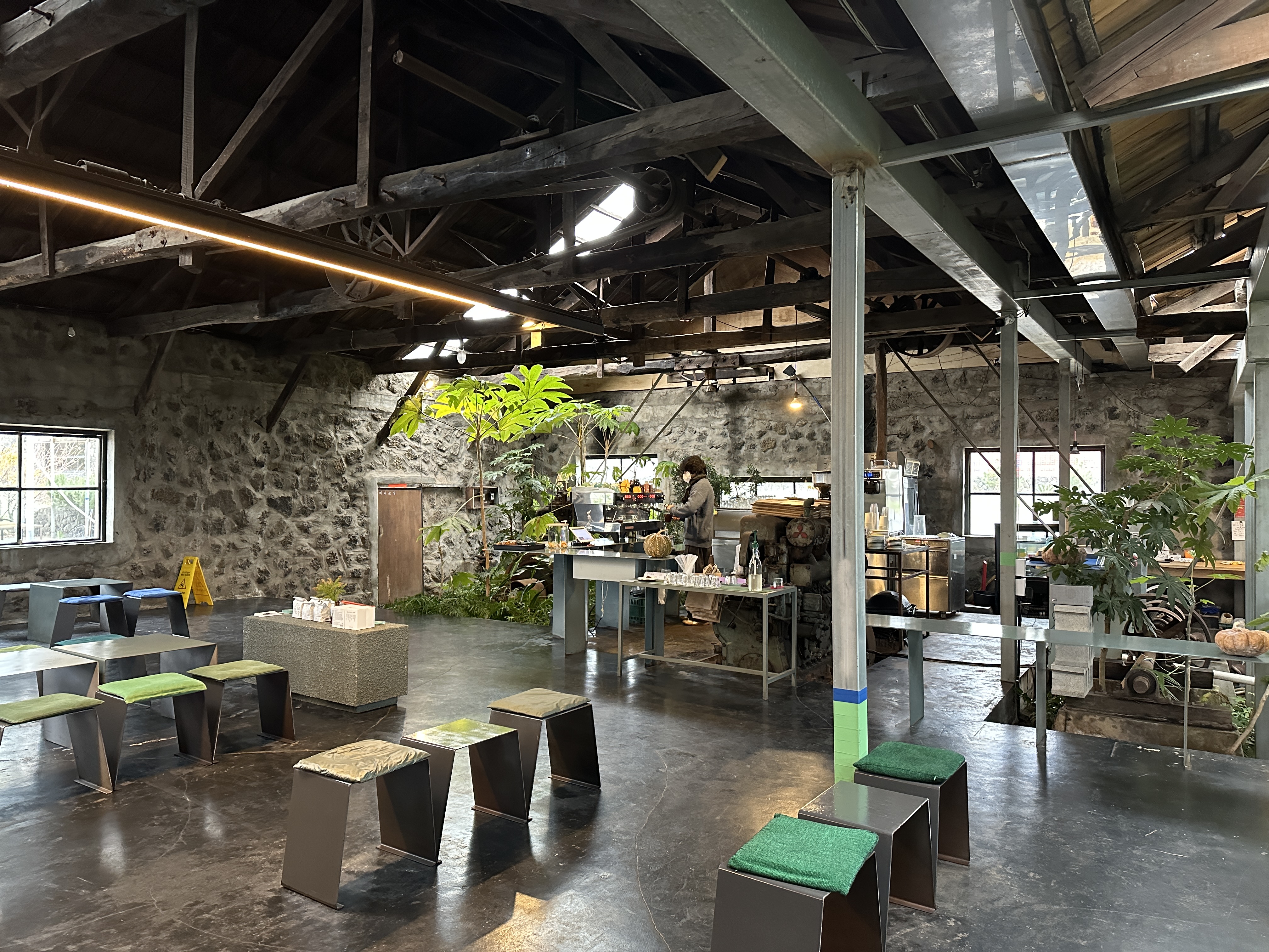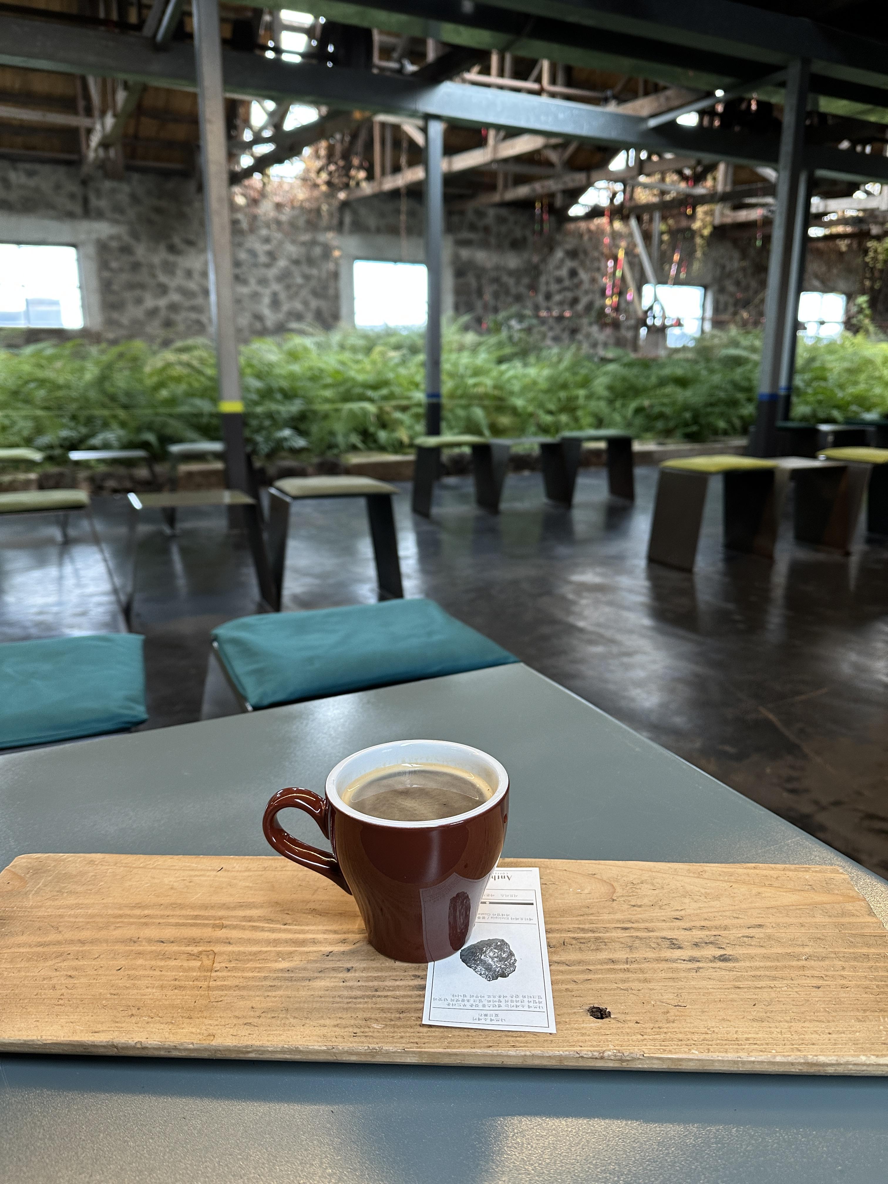 엄청큰 도마에 커피를 준다 아슬아슬 갬성은 좋지만 난 이런 불편한 의자는 너무 싫어..........호르륵 마시고 일어났다!